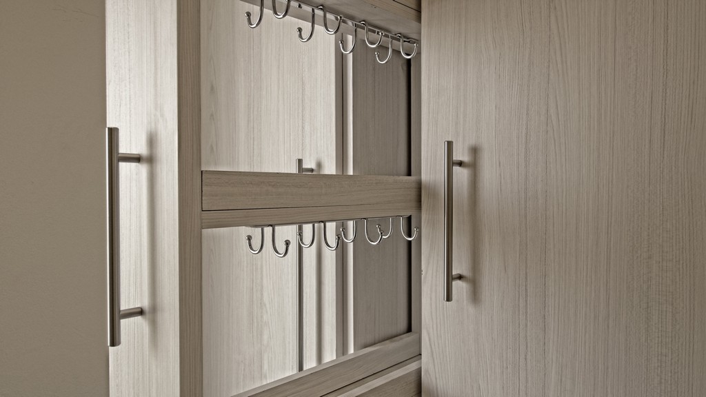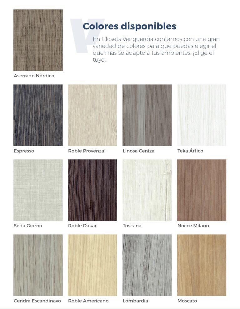 Gran variedad de accesorios: colgadores, cajones, entrepaños, elevadores, cajones con divisiones, zapateras, cinturoneros, corbateros, perfumeros, espejos, colgadores para botas, caja fuerte, etc.