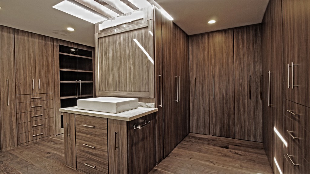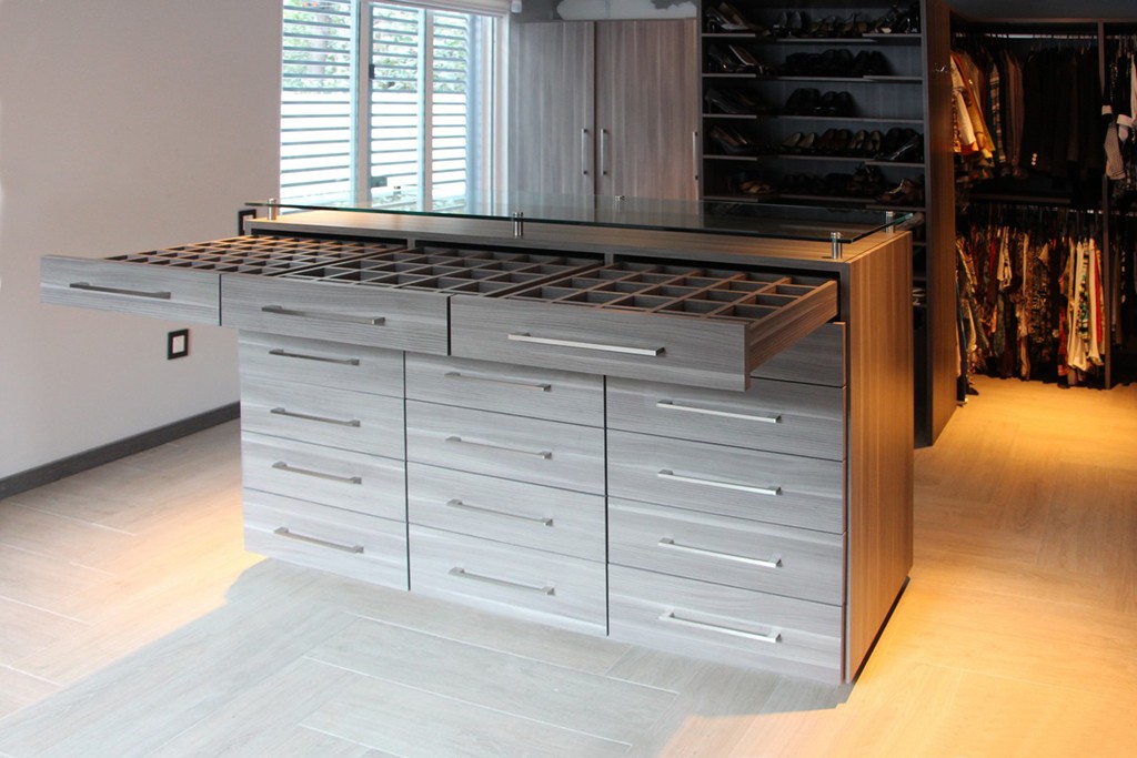La isla es un accesorio muy versátil. Se le pueden integrar cajones con o sin divisiones, una banca, espacio para ropa sucia, joyeros, relojeros, etc.